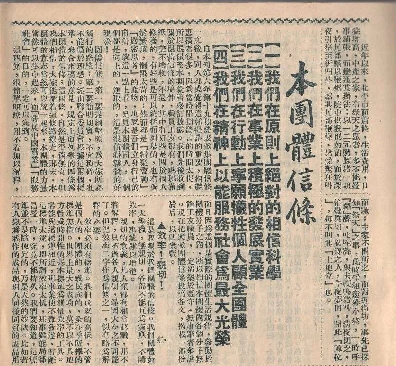 ▲1934年9月20日,在《海王》旬刊正式公布由范旭东先生提炼、制定的“四大信条”